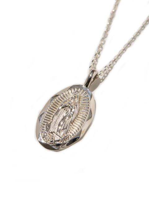 ブランド定番のマリアがレコードを持つデザインが徳手帳的なペンダントトップ。