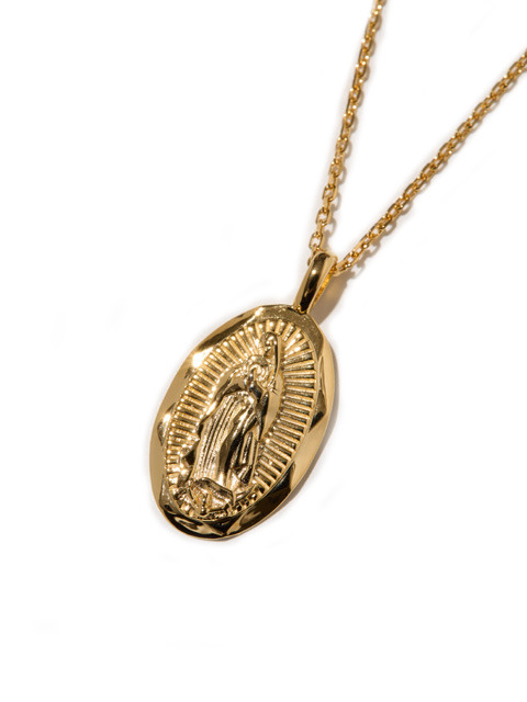ブランド定番のマリアがレコードを持つデザインが徳手帳的なペンダントトップ。