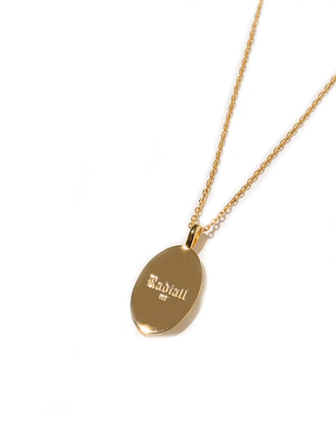 フロッキーネックレスケース付き。ケースの内側には箔押しプリントでブルーフラッグ型の「RADAIALL」ロゴが入ります。