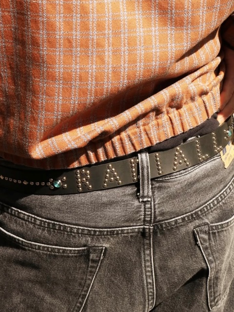 バッファローレザーで作製されたスタッズレザーベルトです。