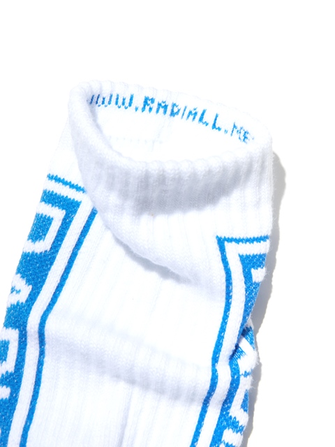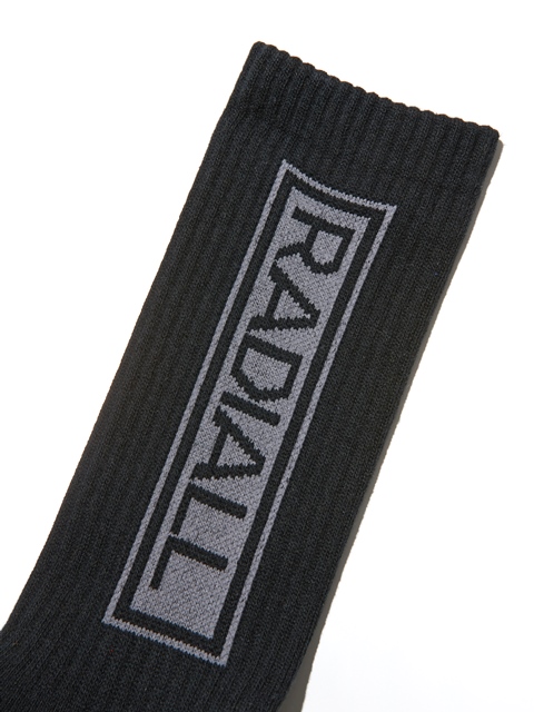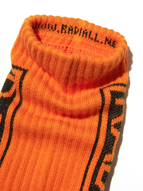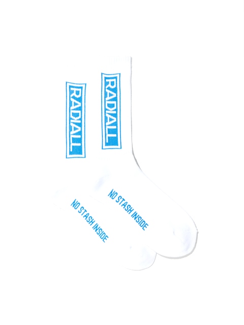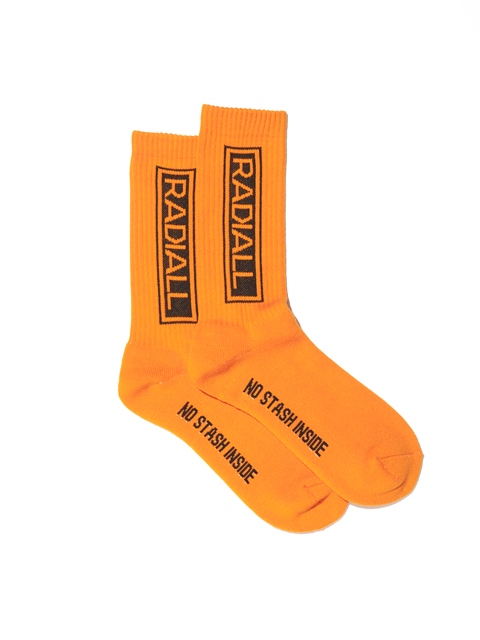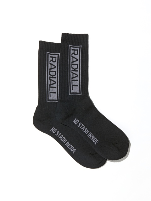 ジャガードで側面に「RADALL」、履き口裏に「WWW.RADIALL.NET」、足裏には「NO STASH INSAIDE」とデザインが入ります。