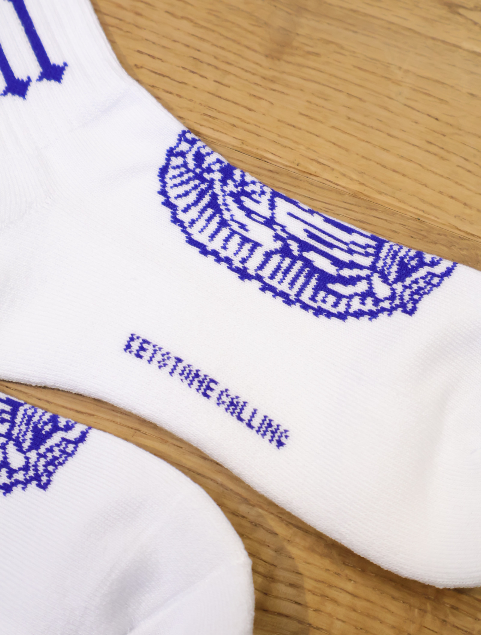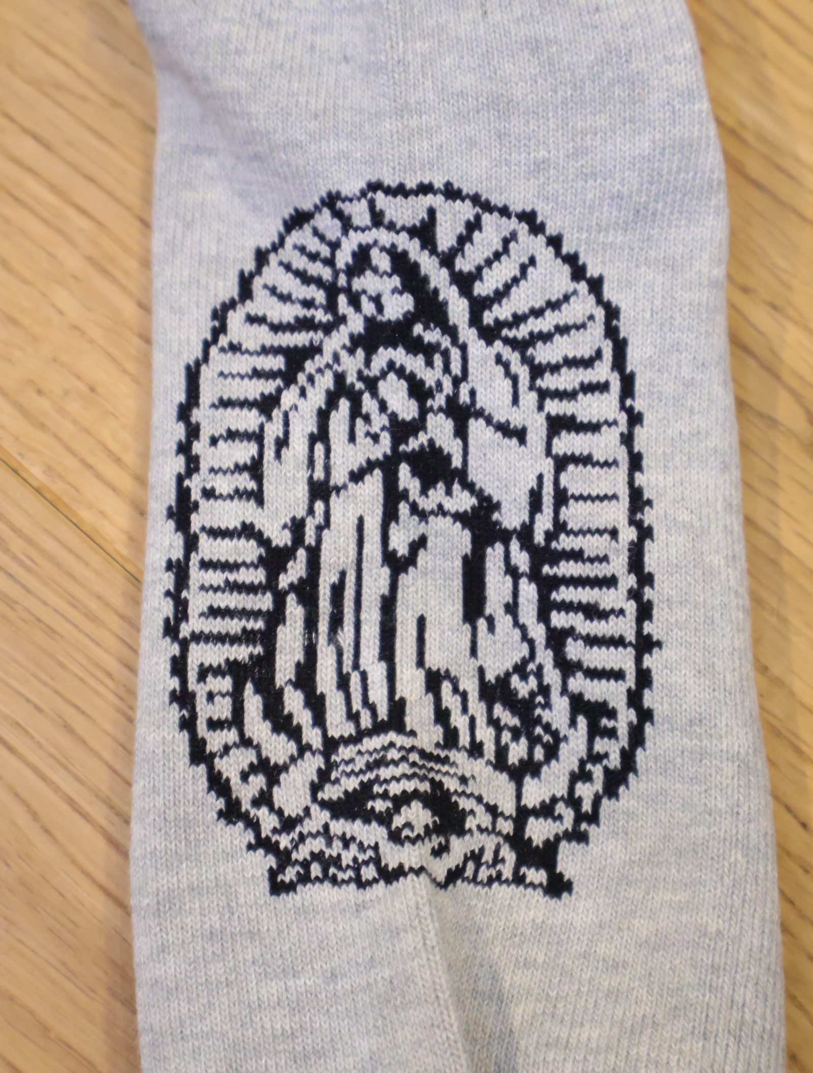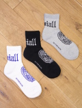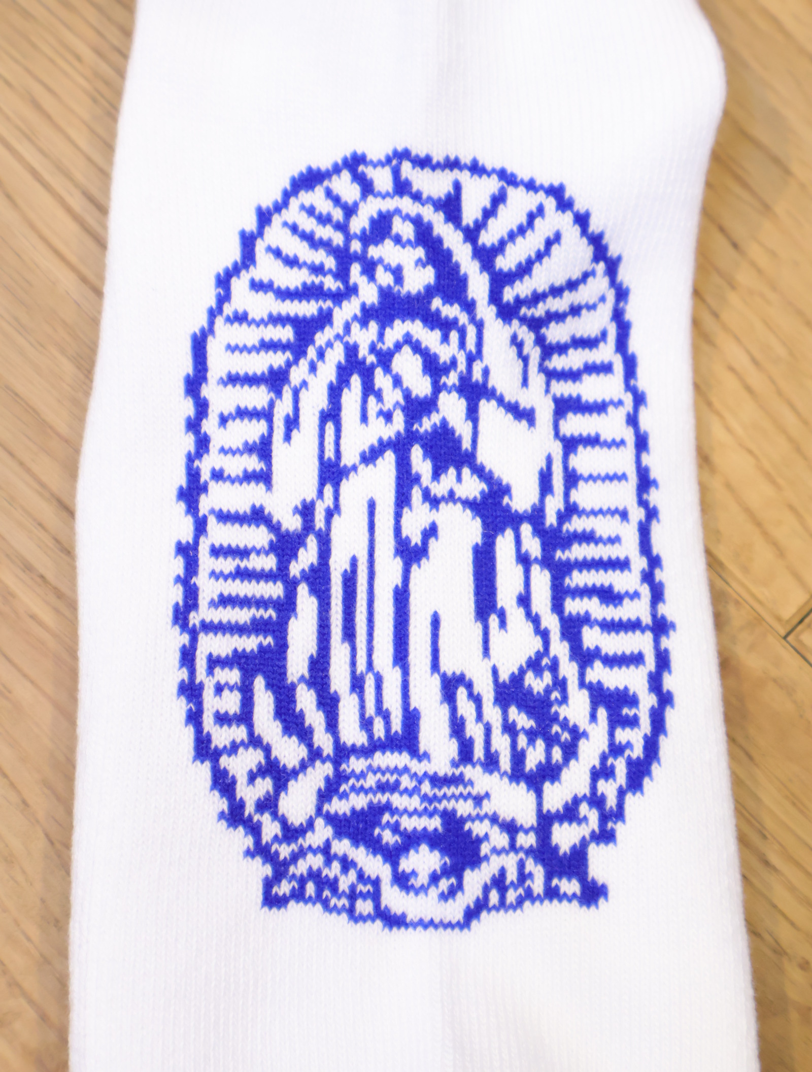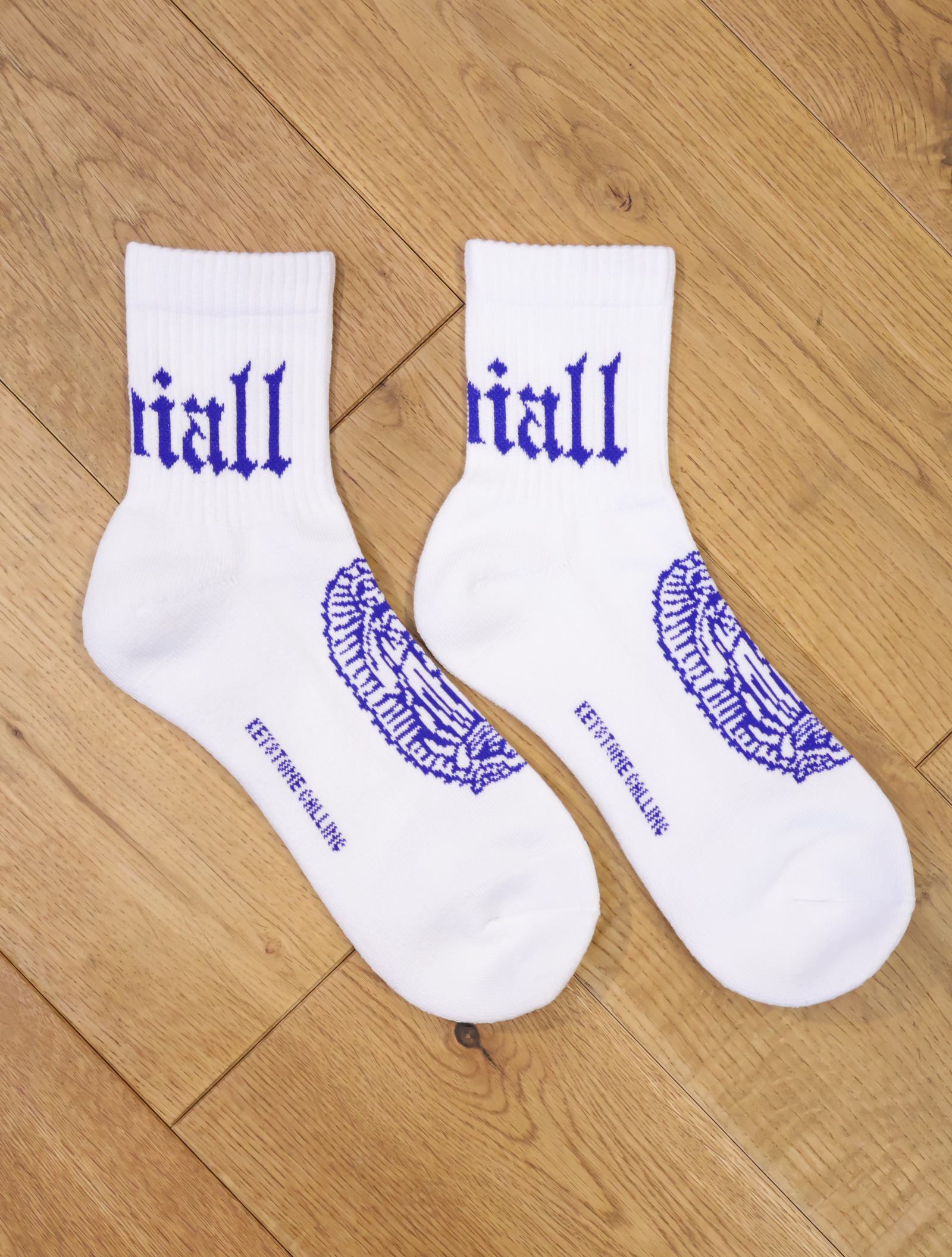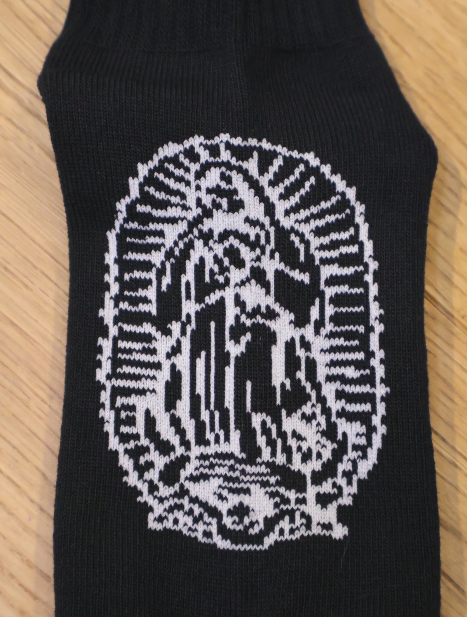 ジャガードで足首裏にブラックレターフォントで「RADIALL」、甲に「レコードマリア」、履き口裏には「WWW.RADIALL.NET]、足底には「KEYSTONE CALLING」とデザインが入ります。