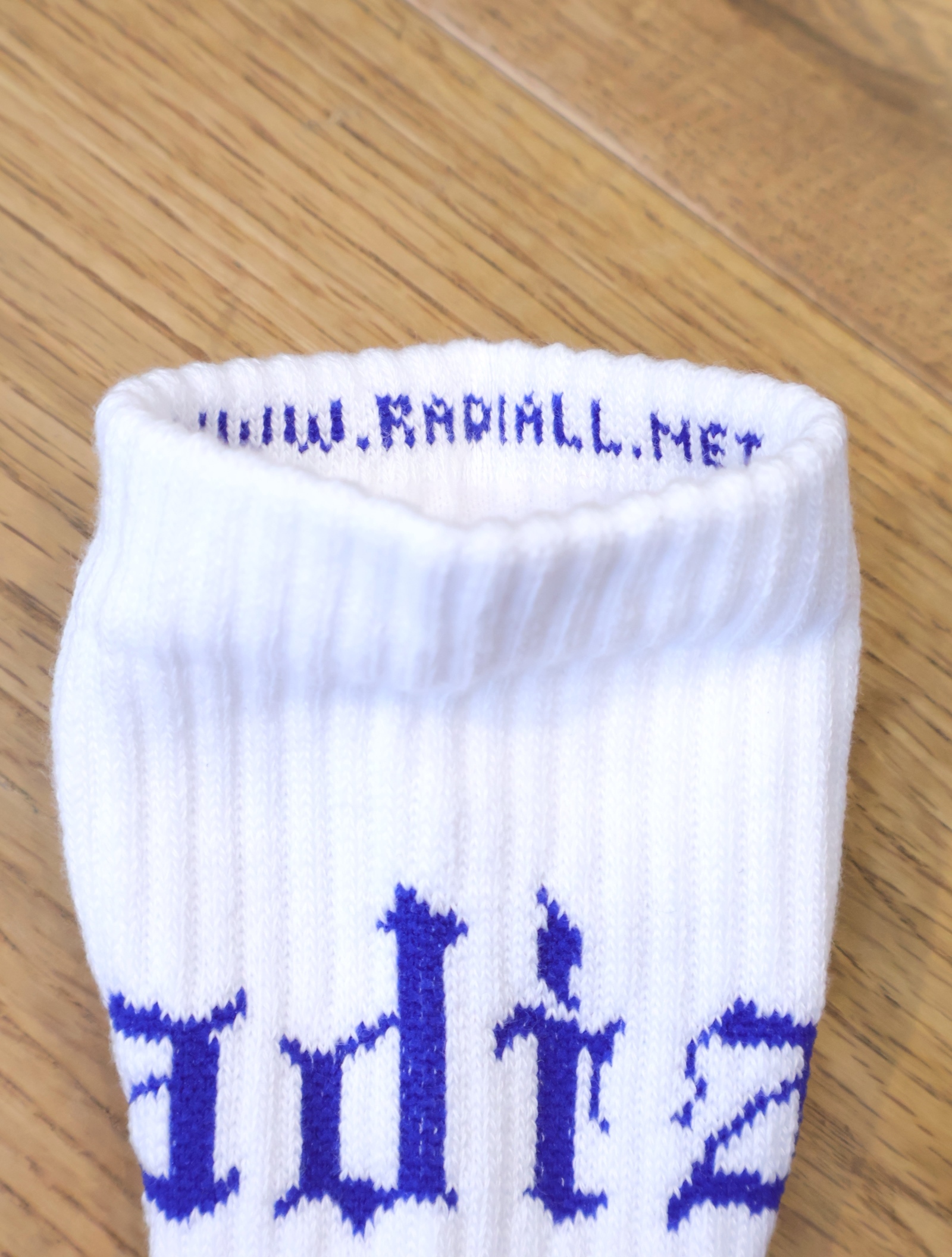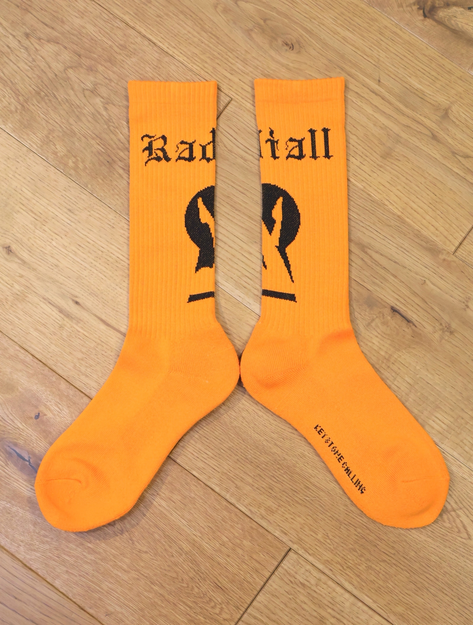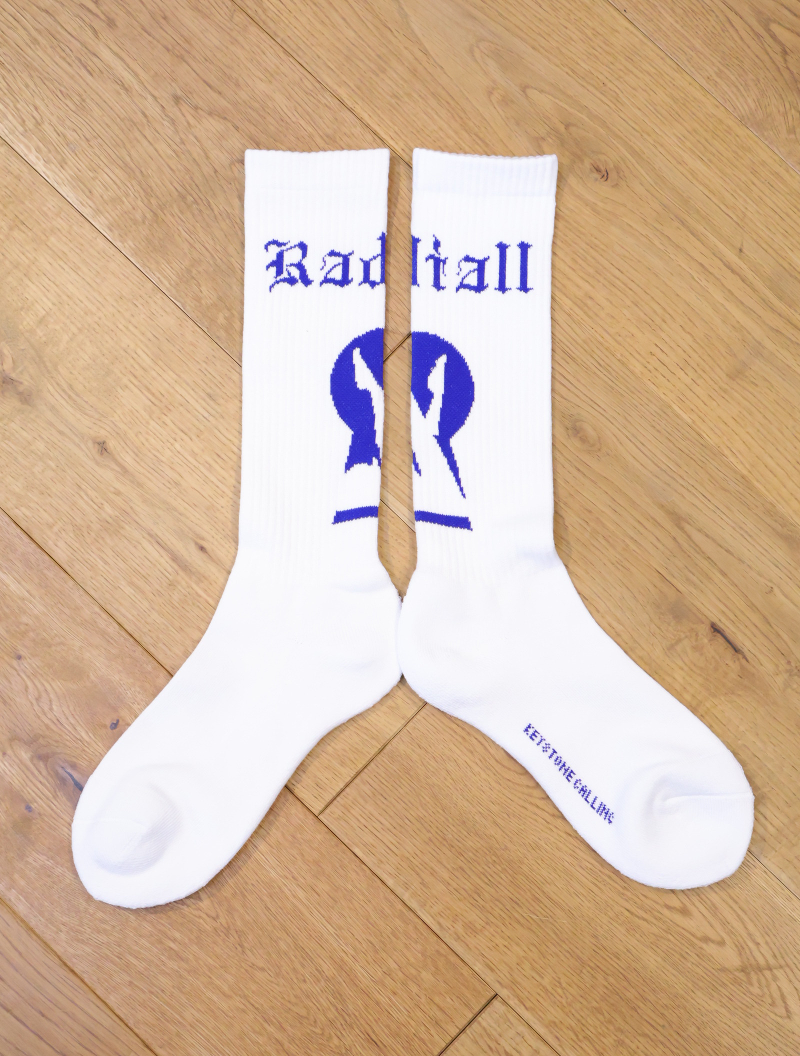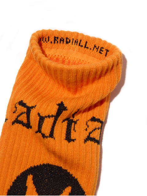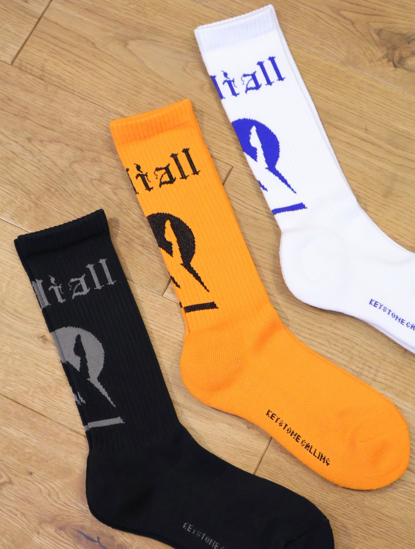 ジャガードでふくらはぎ側に「キーホール」、履き口裏には「WWW.RADIALL.NET]、足裏には「KEYSTONE CALLING」とデザインが入ります。