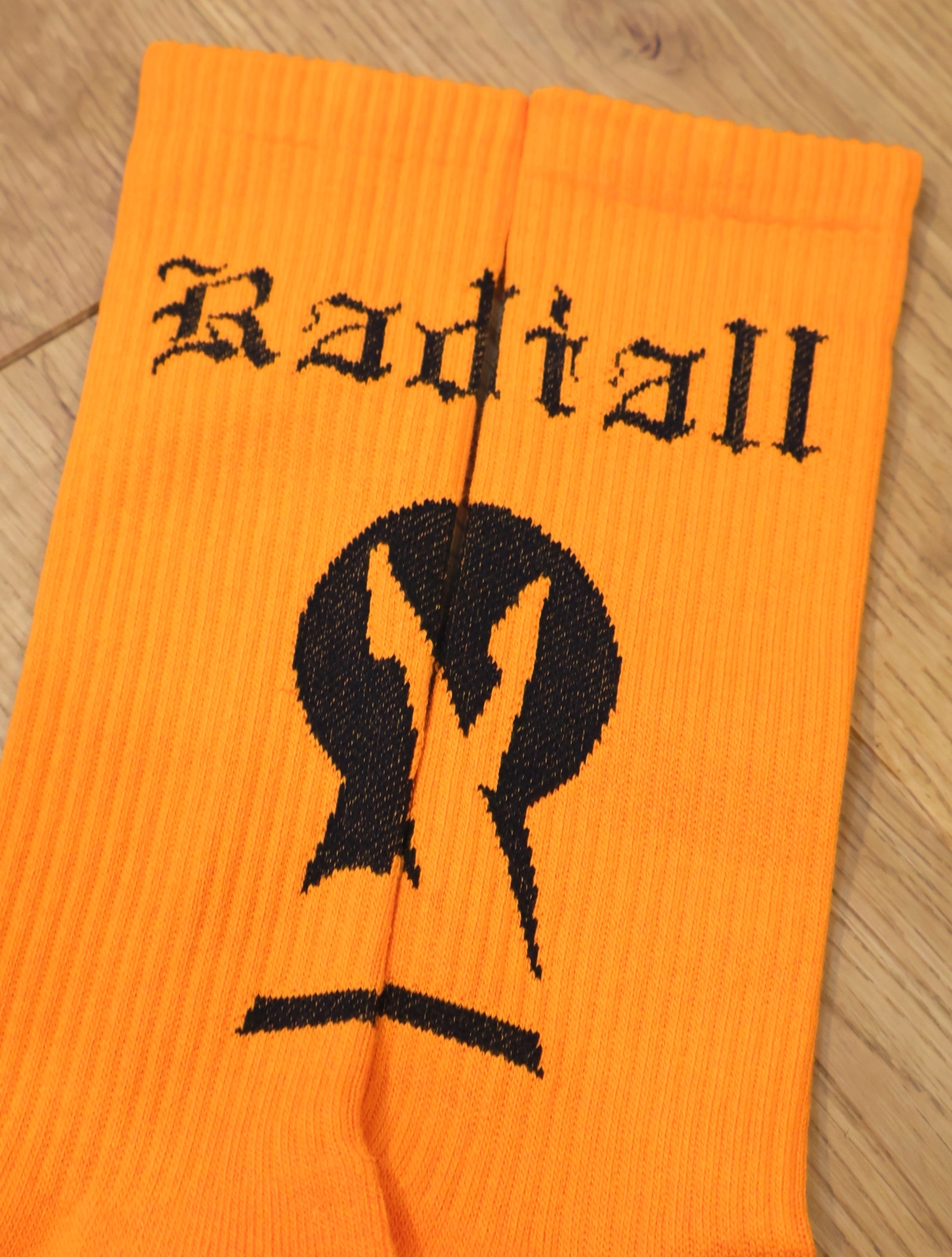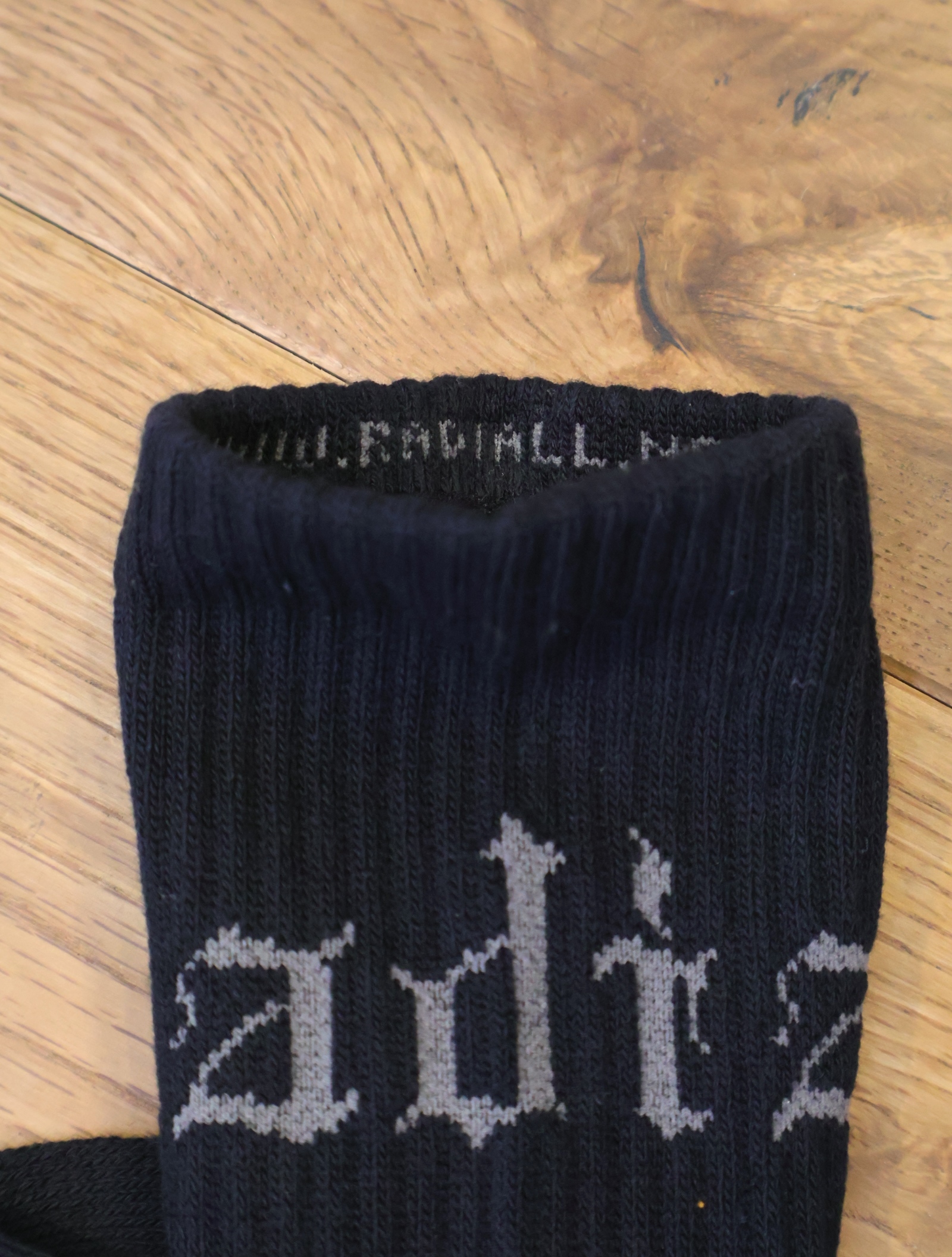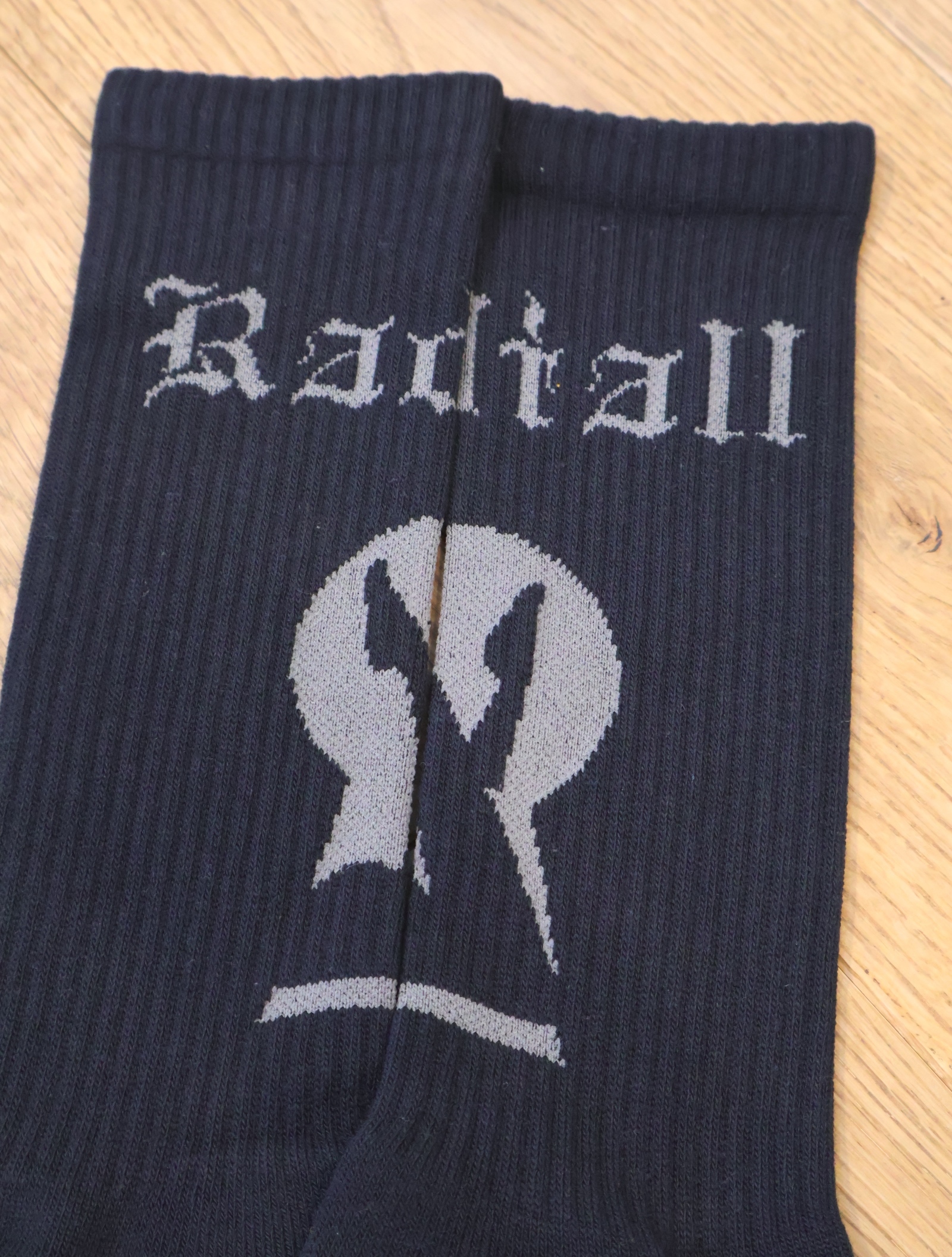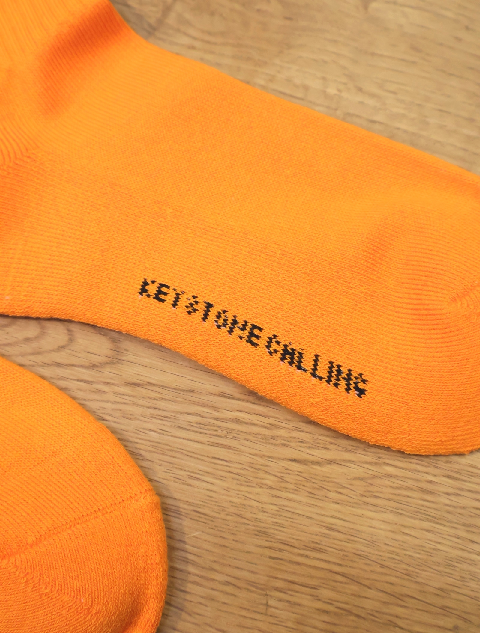 ジャガードでふくらはぎ側に「キーホール」、履き口裏には「WWW.RADIALL.NET]、足裏には「KEYSTONE CALLING」とデザインが入ります。