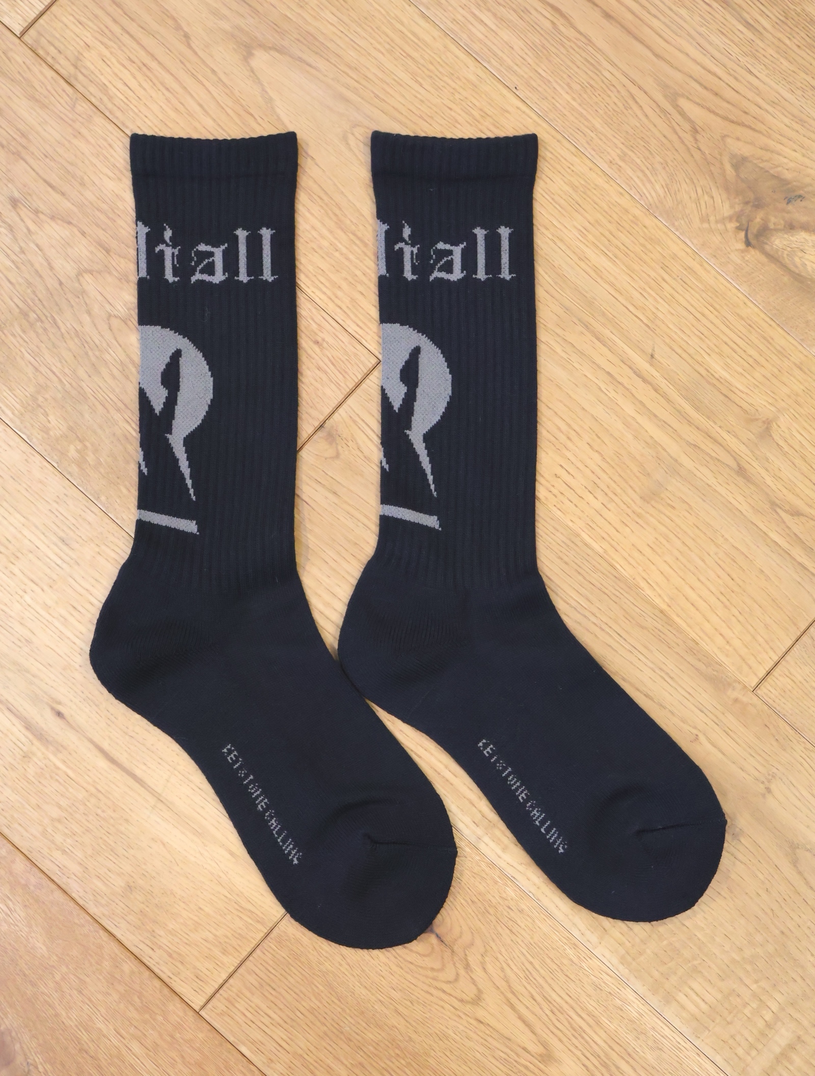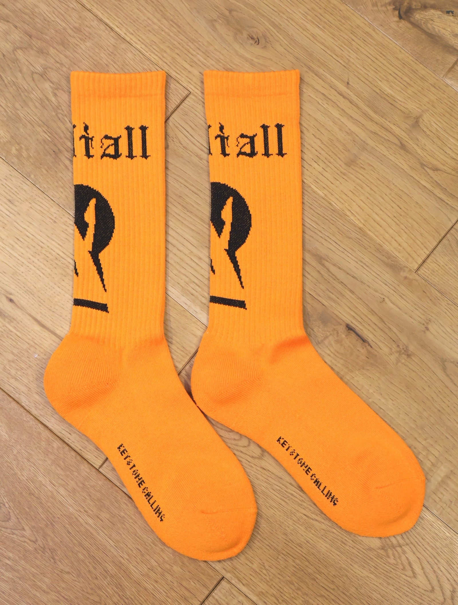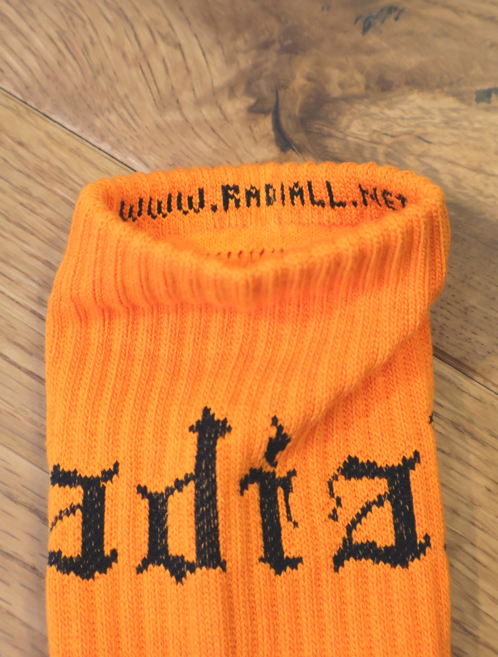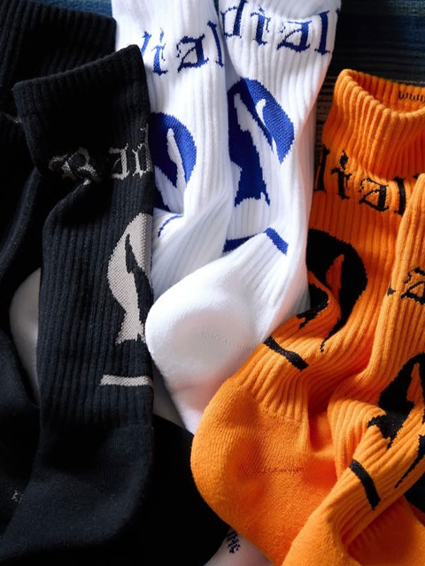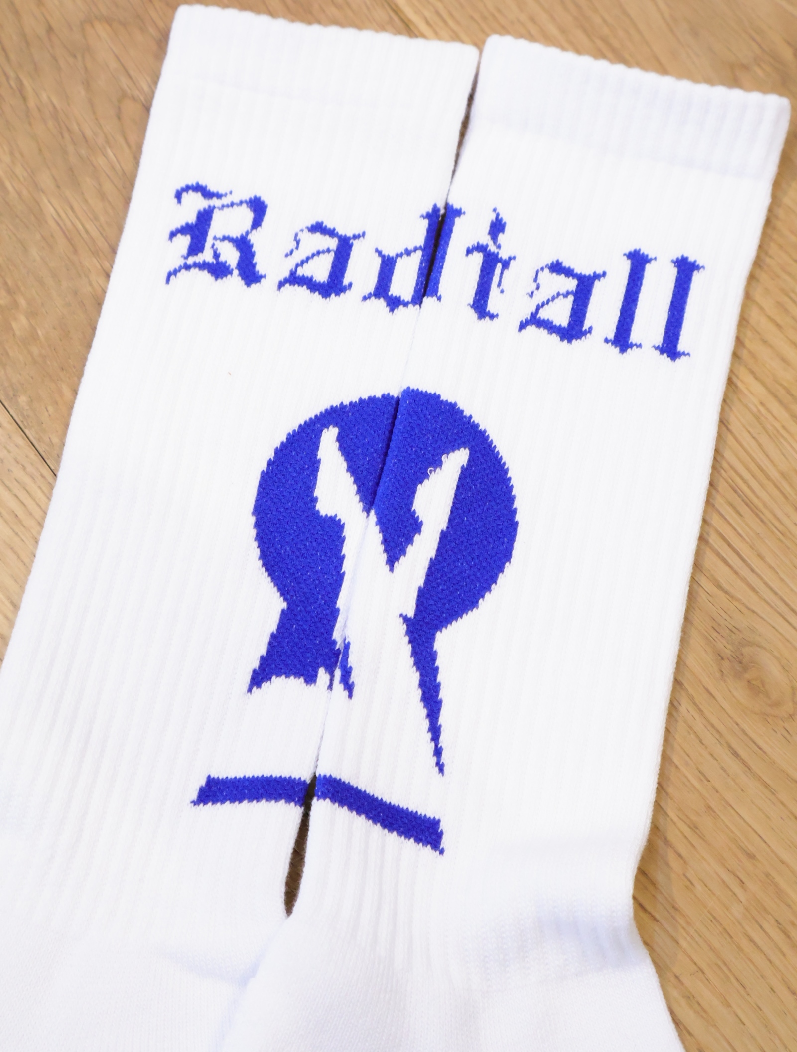 ジャガードでふくらはぎ側に「キーホール」、履き口裏には「WWW.RADIALL.NET]、足裏には「KEYSTONE CALLING」とデザインが入ります。