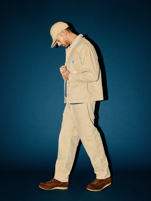 同素材を使用した「ZACC -FOUL ver -」 バイオウォッシュ加工 ワークジャケットや「WIP CAP」 バイオウォッシュ加工 アジャスターワークキャップとセットアップでの着用もオススメです。