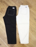 ヒップ・ワタリにゆとりを持たせ、裾にかけややテーパードを効かせたワイドシルエットで作製され、ウエスト部分は平ゴムのギャザー、スピンドル仕様でアジャスト、ホールドできます。