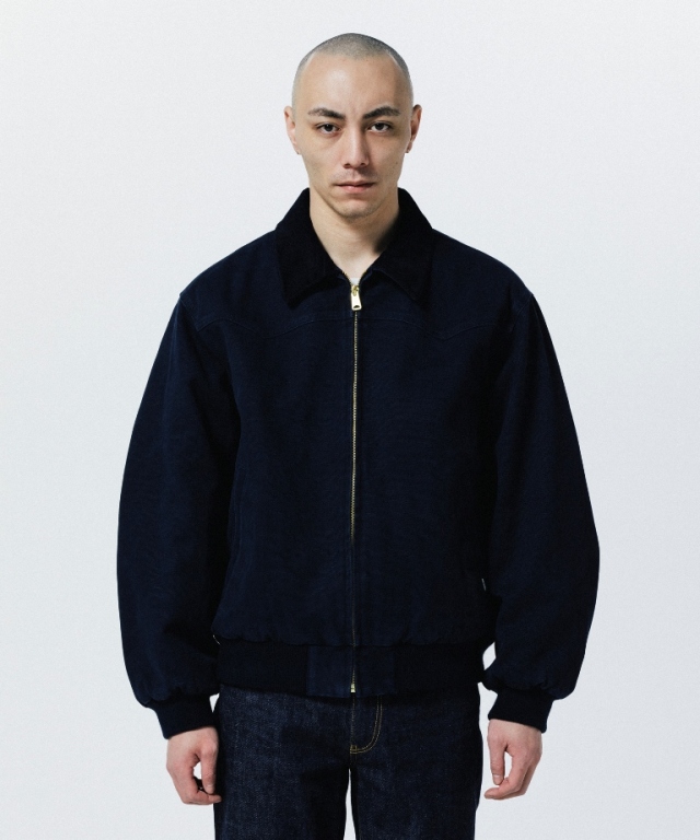 フロント、バックのウエスタンヨークが特徴的で、襟にはコーデュロイ、裏地には中綿を挟み込んだキルティング仕様で防寒性にも優れています。