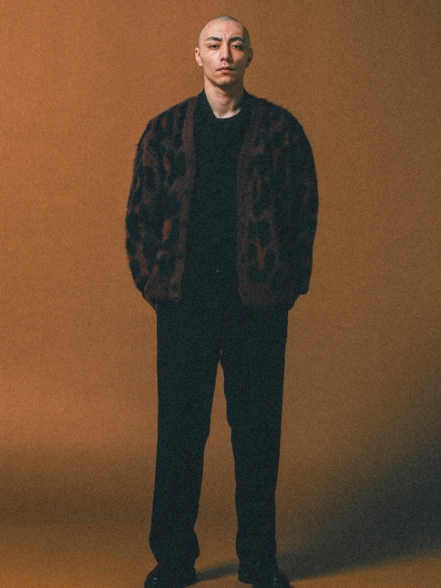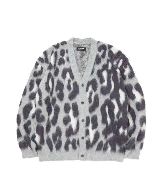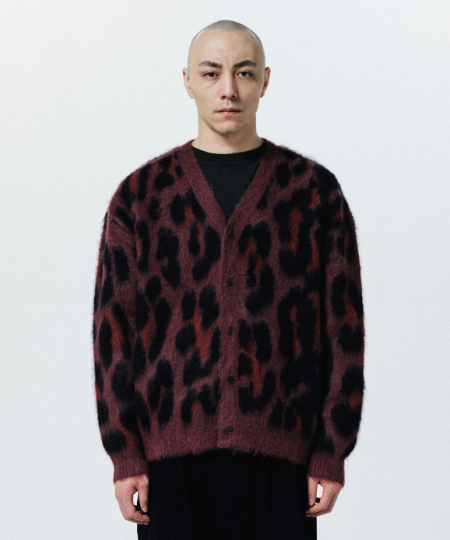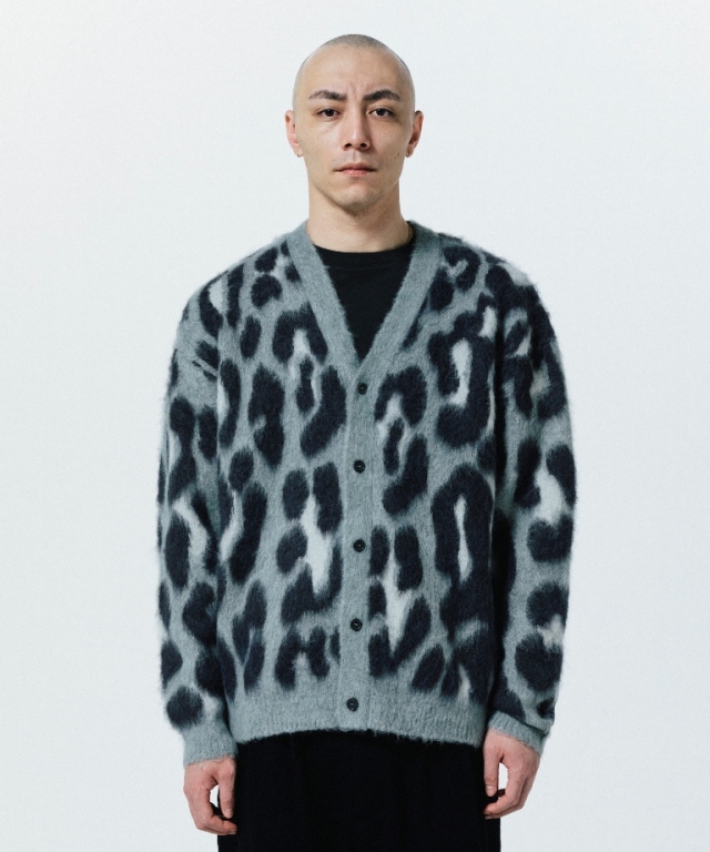 オリジナルのレオパード柄で作製されたウール、モヘア混のニットカーディガンです。