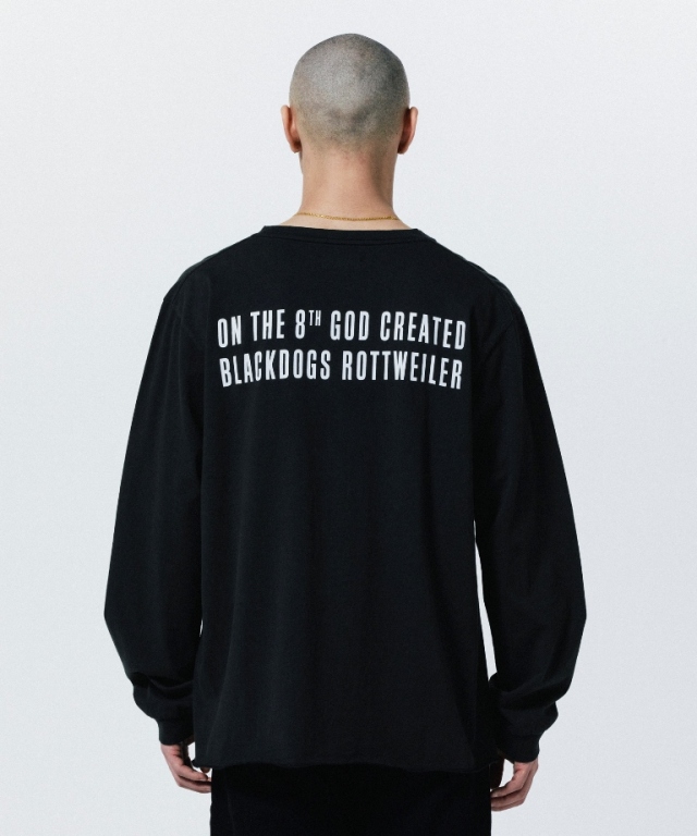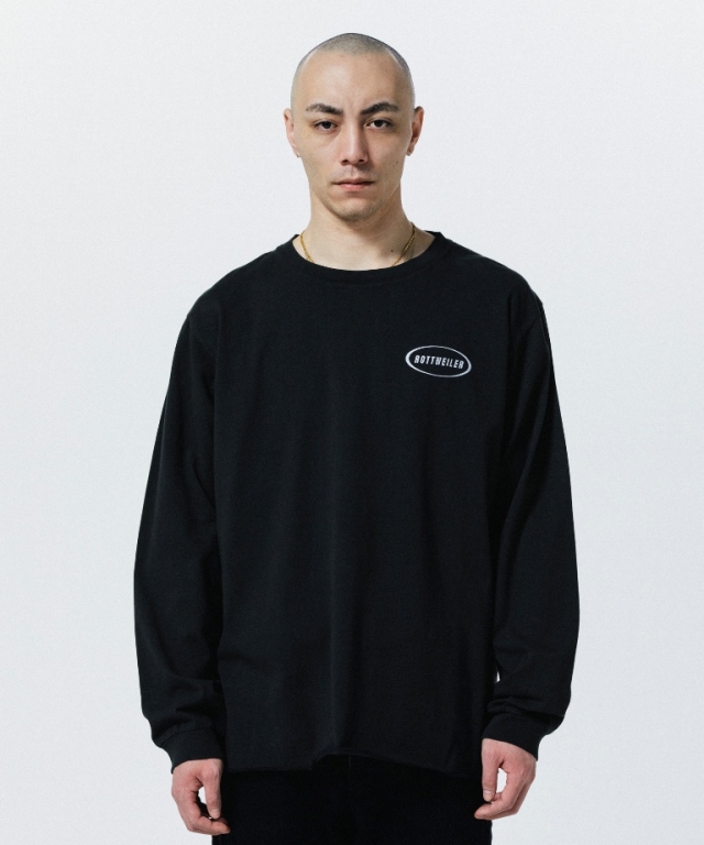 コットン100%のオリジナルボディーを使用した裾断ち切り、ロック始末仕様のロングスリーブティーシャツ。