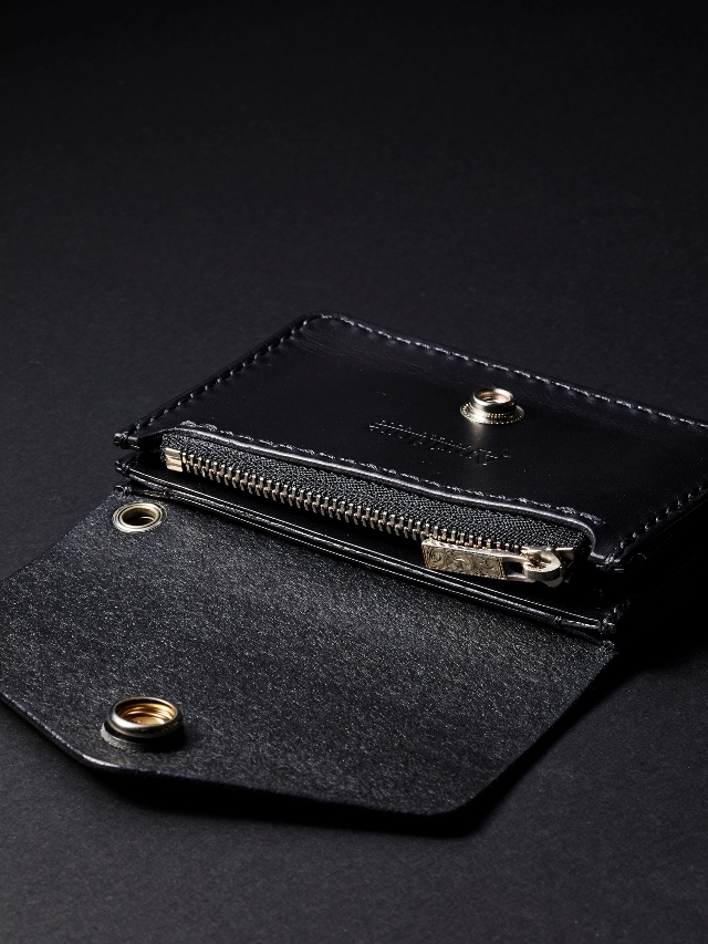 ファスナー部分にはオリジナルの彫金とブランドロゴが刻まれており、マチが作られているので硬貨の出し入れがし易く、機能面にも優れています。