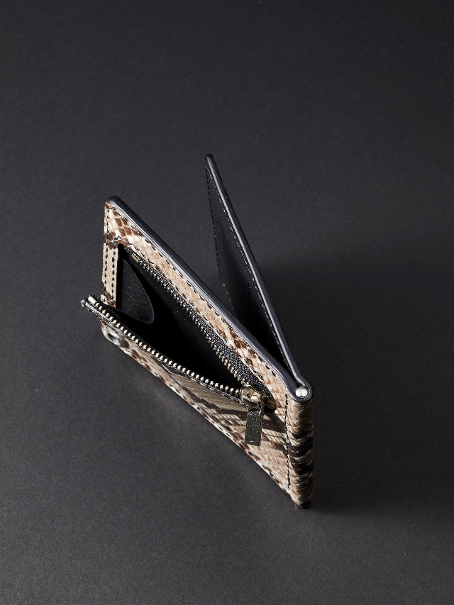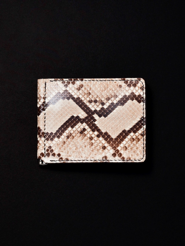 外面には上質なパイソンレザー、内側にはカウレザーを使用したMoney Clip Wallet (Python Natural)です。
