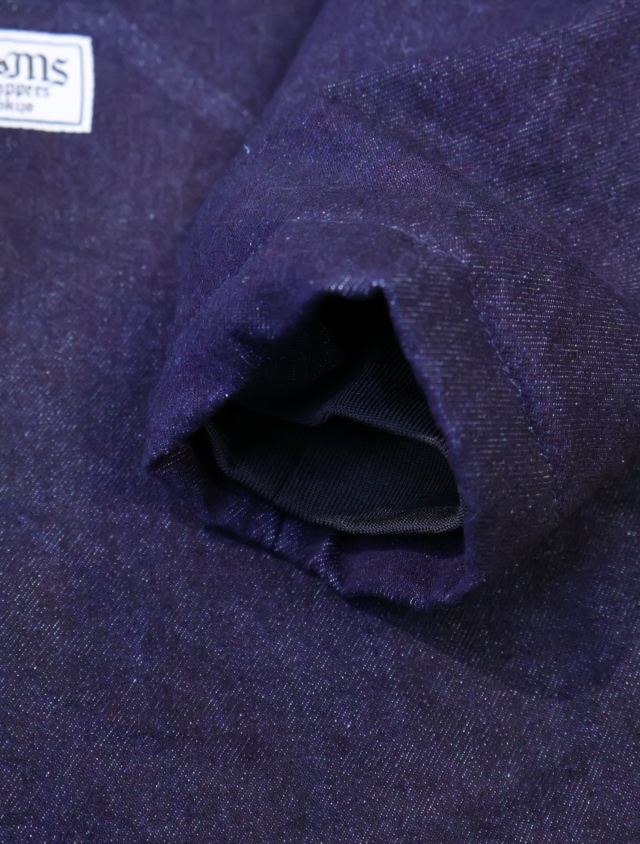 裏地には滑りの良いポリエステル生地を使用し、中綿をキルティングで挟み込み、袖通しの良さと保温性を確保しています。