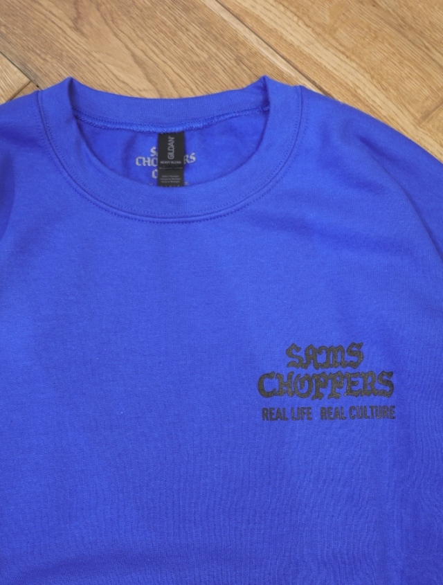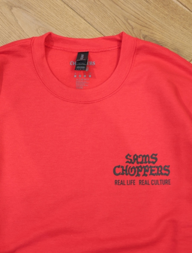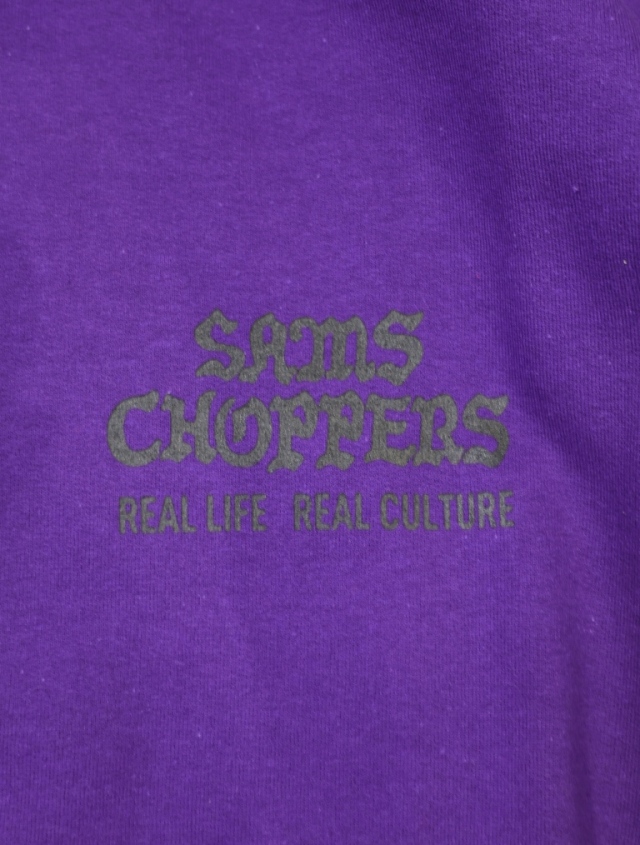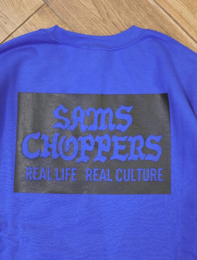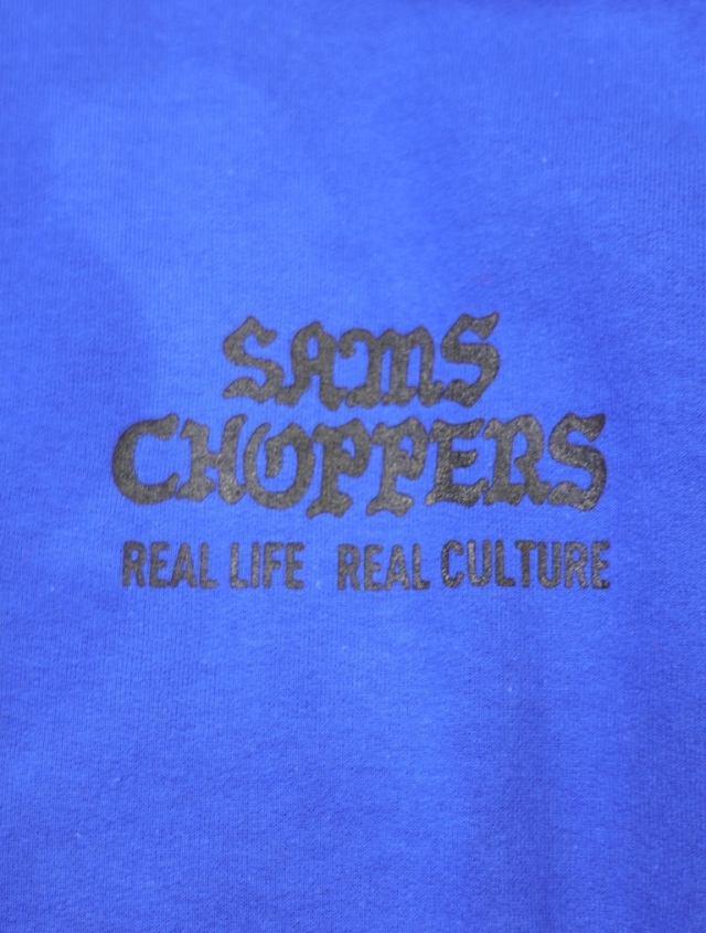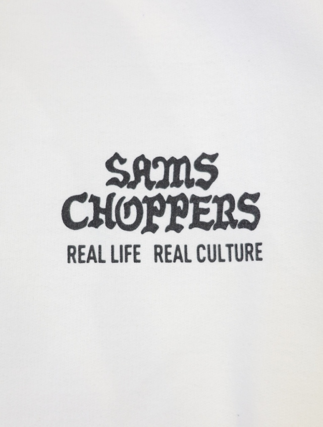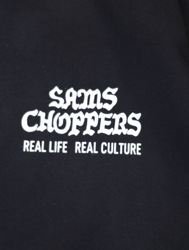 USAメーカー GILDAN社製のライトオンスの裏起毛スウェットボディーを使用し、左胸、バックに「SAMS CHOPPERS」とプリントが入ります。