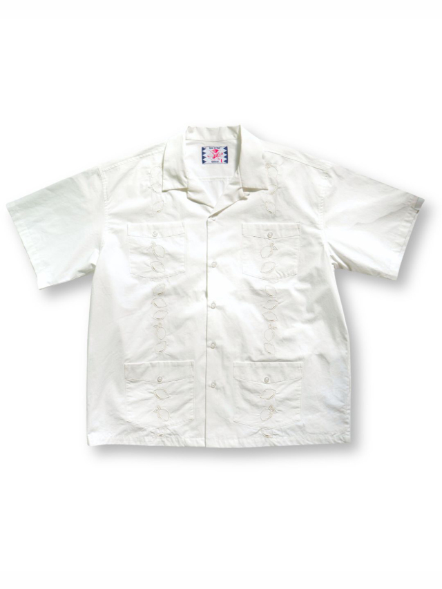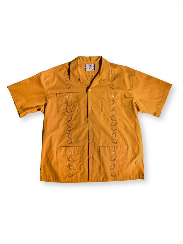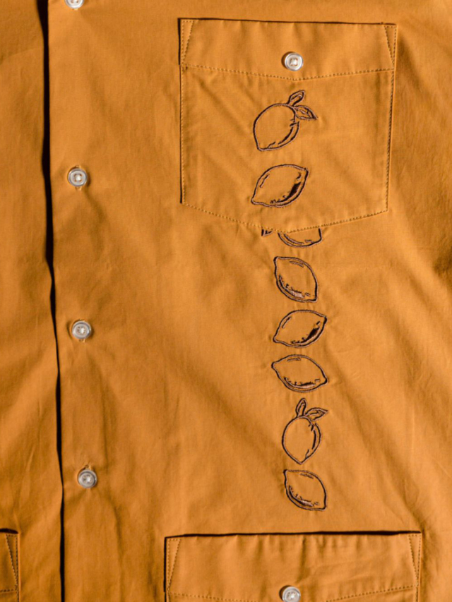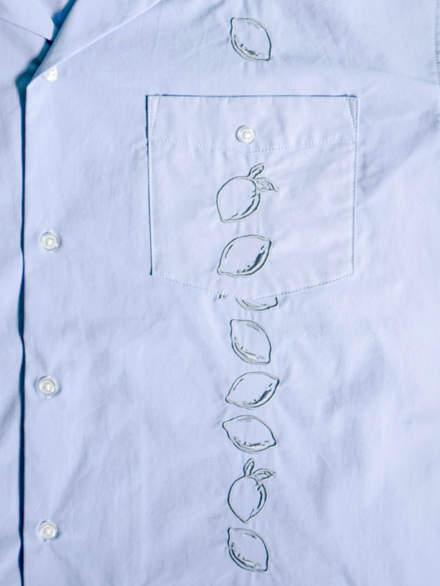 フロント身頃にレモン柄を刺繍し、4つポケットタイプのキューバシャツの型で作製されたデザイン。