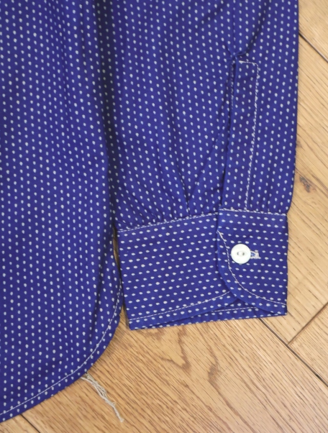 オリジナルで制作したポルカドット柄を落とし込んだ一着。