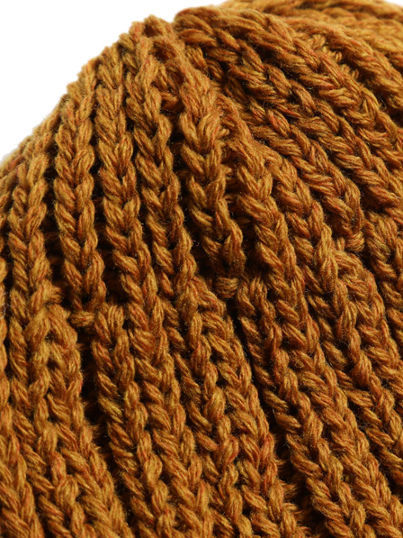 伸縮性を考慮した適度に浅めな帽体、折り返し部の端は編み立てがアクセント。